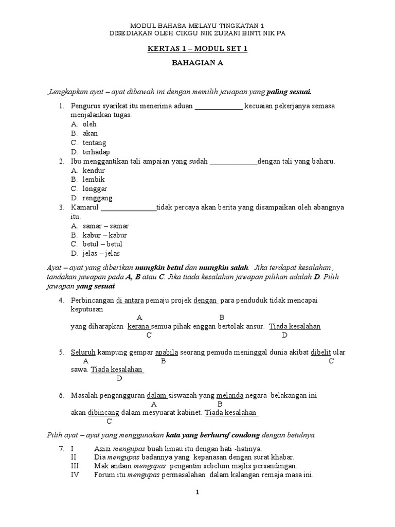 Contoh Soalan Peperiksaan Bm Tingkatan 1 Doc